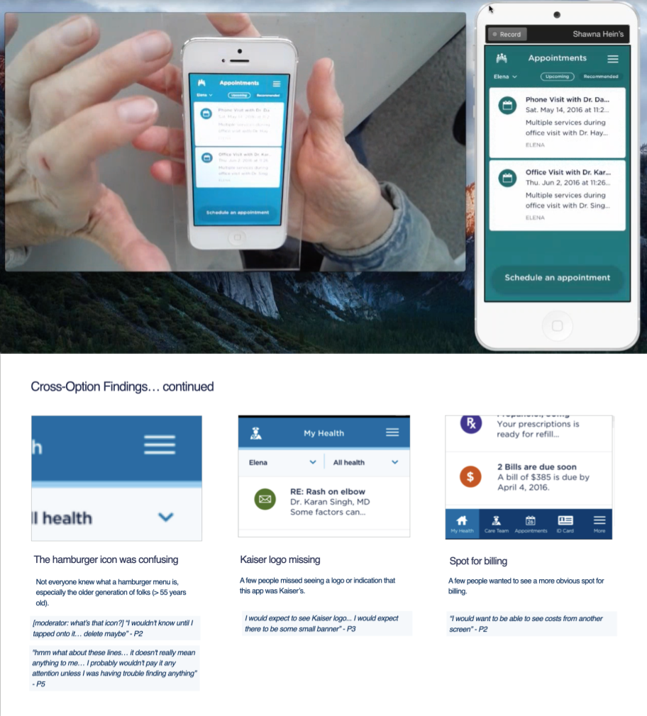 As an independent designer and researcher, I was hired by Redshift Digital to run multiple rounds of research on Kaiser’s flagship mobile app. I helped them set up a mobile usability lab, and we brought in elderly and disabled users to test out the prototypes.